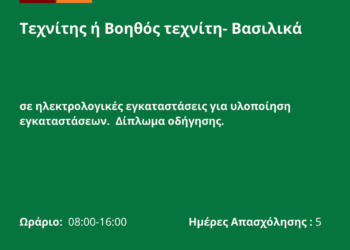 290426-Τεχνίτης ή Βοηθός τεχνίτη- Βασιλικά. Νέα Αγγελία Γραφείου Απασχόλησης