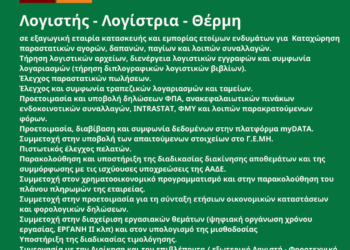 300426-Λογιστής – Λογίστρια – Θέρμη. Νέα Αγγελία Γραφείου Απασχόλησης