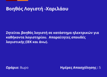 020226-Βοηθός Λογιστή -Χαριλάου. Νέα Αγγελία Γραφείου Απασχόλησης.