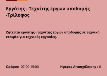 ... Περισσότερα 280126-Εργάτης -Καρδία. Νέα Αγγελία Γραφείου Απασχόλησης.