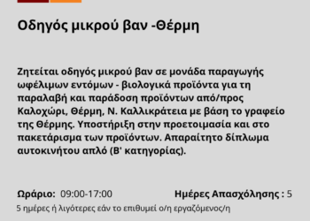 020226-Οδηγός μικρού βαν -Θέρμη. Νέα Αγγελία Γραφείου Απασχόλησης.