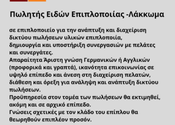 290825-Πωλητής Ειδών Επιπλοποιίας -Λάκκωμα. Νέα Αγγελία Γραφείου Απασχόλησης.
