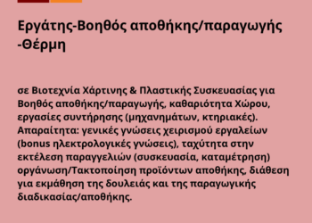 ... Περισσότερα 010925-Εργάτης-Βοηθός αποθήκης/παραγωγής -Θέρμη. Νέα Αγγελία Γραφείου Απασχόλησης.
