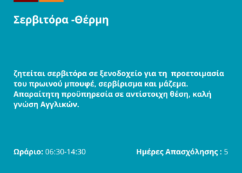 010925-Σερβιτόρα -Θέρμη. Νέα Αγγελία Γραφείου Απασχόλησης.