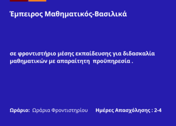 030925-Εμπειρος Μαθηματικός-Βασιλικά.Νέα Αγγελία Γραφείου Απασχόλησης