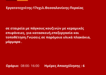 ... Περισσότερα 040925-Εργατοτεχνίτης-17ο χιλ.Θεσσαλονίκης -Περαίας.Νέα Αγγελία Γραφείου Απασχόλησης