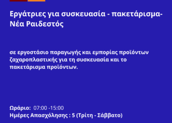 130825-Εργάτριες για συσκευασία – πακετάρισμα- Νέα Ραιδεστός. Νέα Αγγελία Γραφείου Απασχόλησης
