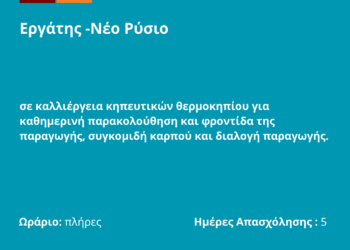 190825-Εργάτης -Νέο Ρύσιο. Νέα Αγγελία Γραφείου Απασχόλησης.
