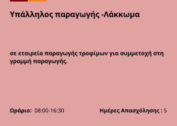 260825-Υπάλληλος παραγωγής -Λάκκωμα. Νέα Αγγελία Γραφείου απασχόλησης.