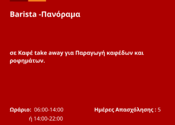 260825-Barista -Πανόραμα. Νέα Αγγελία Γραφείου Απασχόλησης.