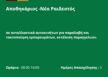 140725-Αποθηκάριος -Ν.Ραιδεστός. Νέα Αγγελία Γραφείου Απασχόλησης.