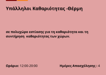 150725-Υπάλληλοι Καθαριότητας -Θέρμη. Νέα Αγγελία Γραφείου Απασχόλησης.