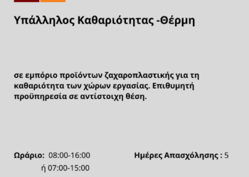 170725-Υπάλληλος Καθαριότητας -Θέρμη. Νέα Αγγελία Γραφείου Απασχόλησης.