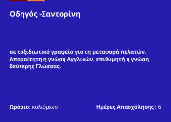 210725-Οδηγός -Σαντορίνη. Νέα Αγγελία Γραφείου Απασχόλησης.