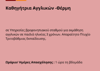 110725-Καθηγήτρια Αγγλικών -Θέρμη. Νέα Αγγελία Γραφείου Απασχόλησης.