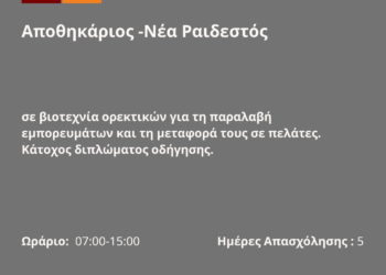 140725-Αποθηκάριος -Νέα Ραιδεστός. Νέα Αγγελία Γραφείου Απασχόλησης.