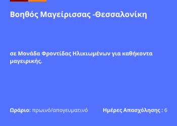 140725-Βοηθός Μαγείρισσας -Θεσσαλονίκη. Νέα Αγγελία Γραφείου Απασχόλησης.