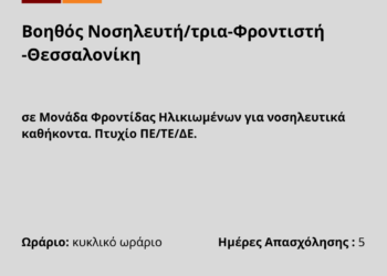 ... Περισσότερα 140725-Βοηθός Νοσηλευτή/τρια-Φροντιστή -Θεσσαλονίκη. Νέα Αγγελία Γραφείου Απασχόλησης.