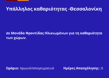 ... Περισσότερα 140725-Υπάλληλος καθαριότητας -Θεσσαλονίκη. Νέα Αγγελία Γραφείου Απασχόλησης.
