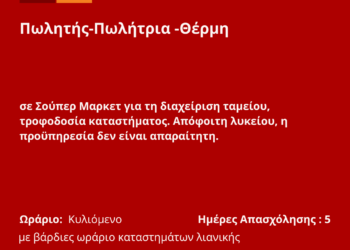 ... Περισσότερα 140725-Αποθηκάριος -Νέα Ραιδεστός. Νέα Αγγελία Γραφείου Απασχόλησης.