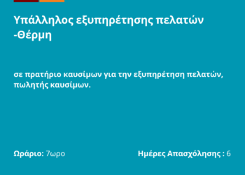 080725-Υπάλληλος εξυπηρέτησης πελατών -Θέρμη. Νέα Αγγελία Γραφείου Απασχόλησης.