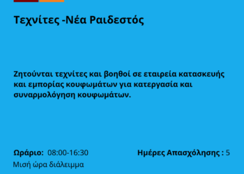 041125-Τεχνίτες -Νέα Ραιδεστός. Νέα Αγγελία Γραφείου Απασχόλησης.