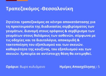 061125-Τραπεζοκόμος -Θεσσαλονίκη. Νέα Αγγελία Γραφείου Απασχόλησης.