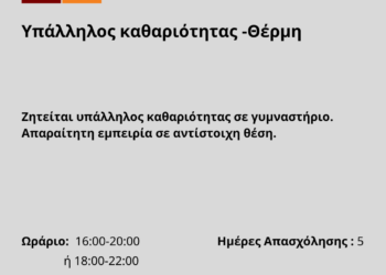 071125-Υπάλληλος καθαριότητας -Θέρμη. Νέα Αγγελία Γραφείου Απασχόλησης.