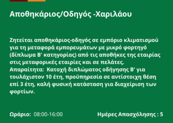 111125-Αποθηκάριος/Οδηγός -Χαριλάου. Νέα Αγγελία Γραφείου Απασχόλησης.
