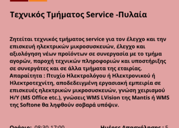 ... Περισσότερα 111125-Τεχνικός Τμήματος Service -Πυλαία. Νέα Αγγελία Γραφείου Απασχόλησης.