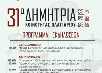 31α Δημήτρια: Σάββατο 25/10 ξεκινά το τετραήμερο εκδηλώσεων στο Πλαγιάρι