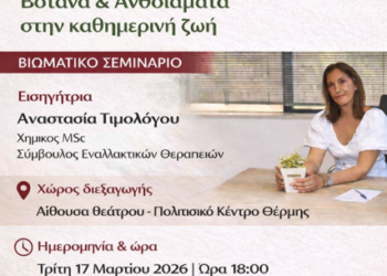 Το ΚΕ.Π. Υγείας του Δήμου Θέρμης διοργανώνει βιωματικό... Περισσότερα Σεμινάριο για την ασφαλή χρήση βοτάνων και ανθοϊαμάτων, στις 17 Μαρτίου στο Πολιτιστικό Κέντρο Θέρμης