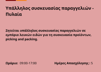110226-Υπάλληλος συσκευασίας παραγγελιών – Πυλαία. Νέα Αγγελία Γραφείου Απασχόλησης.