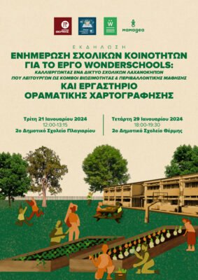 Στο πλαίσιο του έργου “WONDER Schools: καλλιεργώντας ένα δίκτυο σχολικών λαχανόκηπων που λειτουργούν ως κόμβοι βιωσιμότητας και περιβαλλοντικής μάθησης”, που αποτελεί συνέχεια της περσινής συνεργασίας του δήμου Θέρμης με τη “Μαμαγαία”, πρόκειται να οργανωθούν δύο συμμετοχικά διήμερα κατασκευών για τη δημιουργία λαχανόκηπων στις αυλές των σχολείων, την περίοδο Φεβρουάριος-Μάρτιος 2025. Οι ακριβείς ημερομηνίες υλοποίησης θα ανακοινωθούν το επόμενο διάστημα.