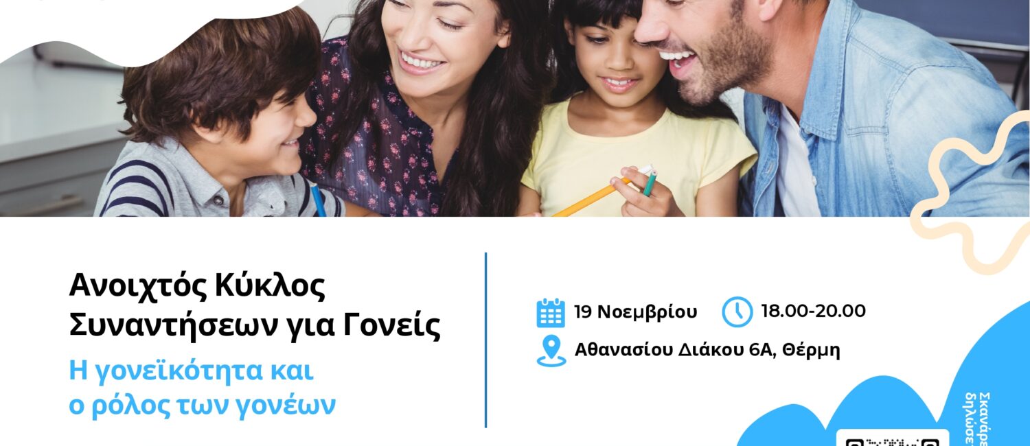 Ο Δήμος Θέρμης, μέσω της Διεύθυνσης Παιδείας, Νεολαίας, Δια Βίου Μάθησης και Απασχόλησης και του Συμβουλευτικού Σταθμού Υποστήριξης Σχολικής Κοινότητας, διοργανώνει έναν ανοιχτό κύκλο επτά δωρεάν συναντήσεων για γονείς και κηδεμόνες. Η δράση υλοποιείται από την ΑΝΑΤΟΛΙΚΗ Α.Ε., Αναπτυξιακό Οργανισμό Τοπικής Αυτοδιοίκησης, σε συνεργασία με τις σχολικές μονάδες και την Ένωση Συλλόγων Γονέων και Κηδεμόνων Μαθητών & Μαθητριών Δήμου Θέρμης.