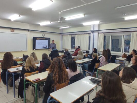 Με επιτυχία ολοκληρώθηκε την Παρασκευή 27 Μαρτίου η ενημερωτική συνάντηση και το βιωματικό εργαστήριο με επίκεντρο τις προκλήσεις που αντιμετωπίζουν οι έφηβοι στο σύγχρονο ψηφιακό περιβάλλον. Η εκδήλωση φιλοξενήθηκε σε χώρο που παραχώρησε το 1ο ΓΕΛ Θέρμης και συγκέντρωσε το ενδιαφέρον των γονέων του Συλλόγου Γονέων του σχολείου. Η δράση αυτή εντάσσεται στο πρόγραμμα που υλοποιεί η Διεύθυνση Παιδείας, Νεολαίας, Δια Βίου Μάθησης και Απασχόλησης για την καταπολέμηση της βίας και των παραβατικών συμπεριφορών και υλοποιήθηκε από τον ψυχολόγο κ. Αναστάσιο Κατραμάδο.