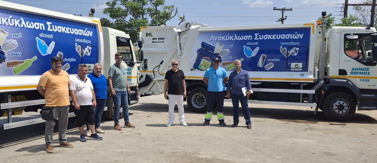 Δύο ολοκαίνουργια απορριμματοφόρα τα οποία θα ενισχύσουν τον τομέα της ανακύκλωσης, παρέλαβε ο δήμος Θέρμης, δωρεά από την Ελληνική Εταιρεία Αξιοποίησης Ανακύκλωσης. Παρόντες στην παραλαβή ήταν ο δήμαρχος Θέρμης Θεόδωρος Παπαδόπουλος και ο αρμόδιος αντιδήμαρχος Καθαριότητας Στέργιος Γκιζάρης. Πλέον, ο δήμος Θέρμης διαθέτει έξι απορριμματοφόρα για την ανακύκλωση, δώδεκα για την αποκομιδή των σύμμεικτων απορριμμάτων, εκ των οποίων τα δύο κάνουν αποκομιδή από τους υπόγειους κάδους, ένα μικρό απορριμματοφόρο για τους καφέ κάδους και ένα καδοπλυντήριο.