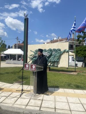 Τον πανηγυρικό της ημέρας για την εξέγερση της Χαλκιδικής με μπροστάρηδες τον Εμμανουήλ Παππά και τον Καπετάν Χάψα, τη Μάχη και το Ολοκαύτωμα των Βασιλικών εκφώνησε ο πατέρας Σταύρος του Ιερού Ναού Αγίου Γεωργίου, ενώ ο μαθητής της Α’ λυκείου Αθανάσιος Παπουτσάκης απήγγειλε ποίημα το οποίο έγραψε ο ίδιος.