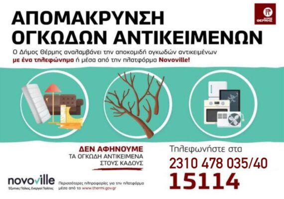 Για την αποκομιδή όλων αυτών μπορούν οι πολίτες να απευθύνονται στον Δήμο, είτε με ένα τηλεφώνημα στα τηλέφωνα 2310478035-040 ή στο 15114 είτε μέσα από την πλατφόρμα Novoville.
