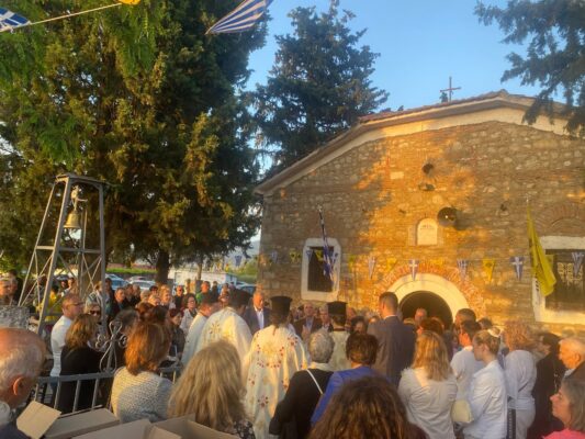 Με ιδιαίτερη ευλάβεια εορτάστηκαν οι Άγιοι Κωνσταντίνος και Ελένη στον ομώνυμο ιστορικό Ιερό Ναό των Αγίων που χτίστηκε το 1874, στο Νέο Ρύσιο. Την παραμονή