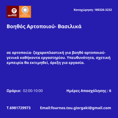 Τηλ. κέντρο Βασιλικών: 23963 30023, 23963 30032