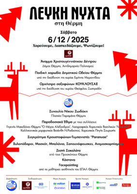 Το Σάββατο 6 Δεκεμβρίου, ανήμερα του Αγίου Νικολάου, Πολιούχου της Θέρμης, ανοίγει η αυλαία της εορταστικής περιόδου στον Δήμο Θέρμης. Θα πρόκειται, μάλιστα, για διπλή