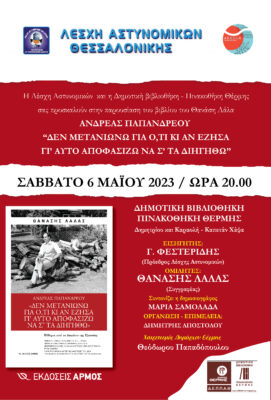 Η Λέσχη Αστυνομικών Θεσσαλονίκης και η Δημοτική Επιχείρηση Πολιτισμού, Περιβάλλοντος και Αθλητισμού του Δήμου Θέρμης διοργανώνουν παρουσίαση του νέου βιβλίου του Θανάση Λάλα «Ανδρέας Παπανδρέου