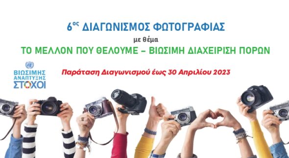 Έως τις 30 Απριλίου 2023 θα παραταθεί ο 6ος διαγωνισμός φωτογραφίας με θέμα «Το Μέλλον που θέλουμε – Βιώσιμη διαχείριση πόρων» που διοργανώνει ο Αναπτυξιακός Οργανισμός