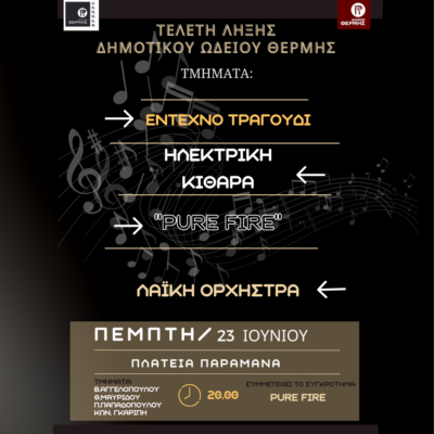 Με την ολοκλήρωση των εξετάσεων και συναυλιών έρχεται και η τελευταία συναυλία στο πλαίσιο της τελετής λήξης των μαθημάτων στο Δημοτικό Ωδείο Θέρμης. Συγκεκριμένα, την