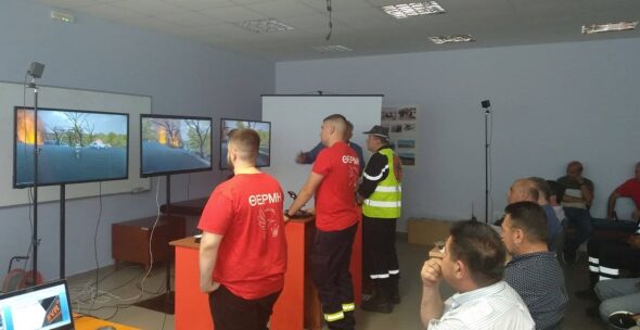 Επίδειξη εικονικής κατάσβεσης δασικής πυρκαγιάς στο περιαστικό δάσος Φράγματος Θέρμης έγινε την Τρίτη 21 Ιουνίου, στην ειδική αίθουσα Πολιτικής Προστασίας του δήμου Θέρμης, από Εθελοντές