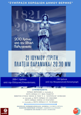 Με μια συναυλία αφιερωμένη στη μνήμη των ηρώων της Ελληνικής Επανάστασης η οποία θα πραγματοποιηθεί σήμερα Τρίτη 21 Ιουνίου στο αμφιθέατρο της πλατείας Παραμάνα, στις