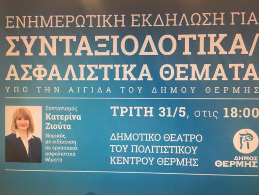Eνημέρωση αλλά και απαντήσεις σε ζητήματα τα οποία έχουν να κάνουν με συνταξιοδοτικά και ασφαλιστικά θέματα θα έχουν την ευκαιρία να λάβουν όσοι παρακολουθήσουν την