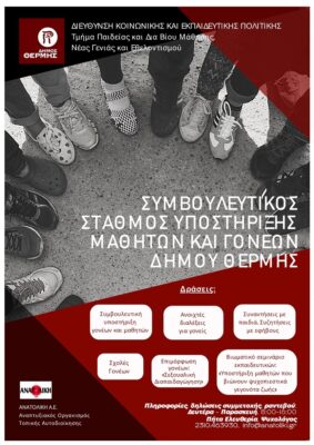 Νέες δράσεις του Συμβουλευτικού Σταθμού Υποστήριξης Μαθητών & Γονέων Δήμου Θέρμης