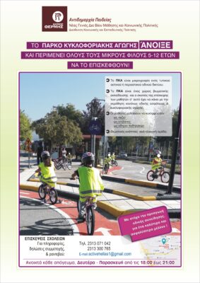 Στη διάθεση των δημοτών και κυρίως των παιδιών είναι και πάλι το Πάρκο Κυκλοφοριακής Αγωγής του δήμου Θέρμης. Την επαναλειτουργία του Πάρκου ανακοίνωσε η Αντιδημαρχία